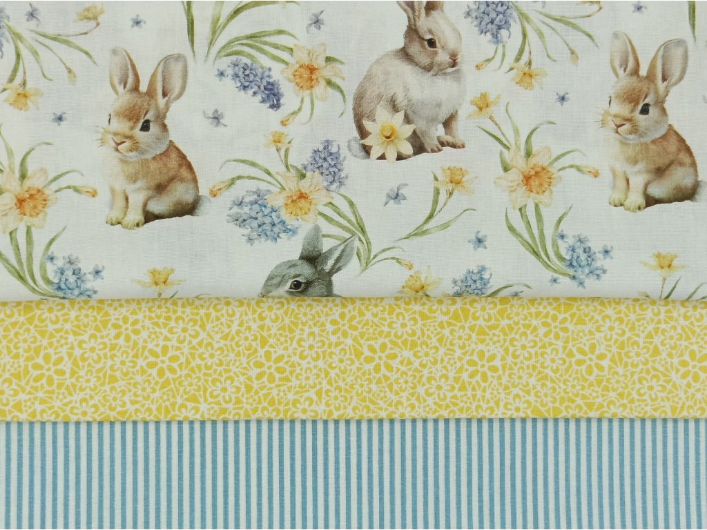 Bavlněná látka Králíci s narciskami - digitální tisk