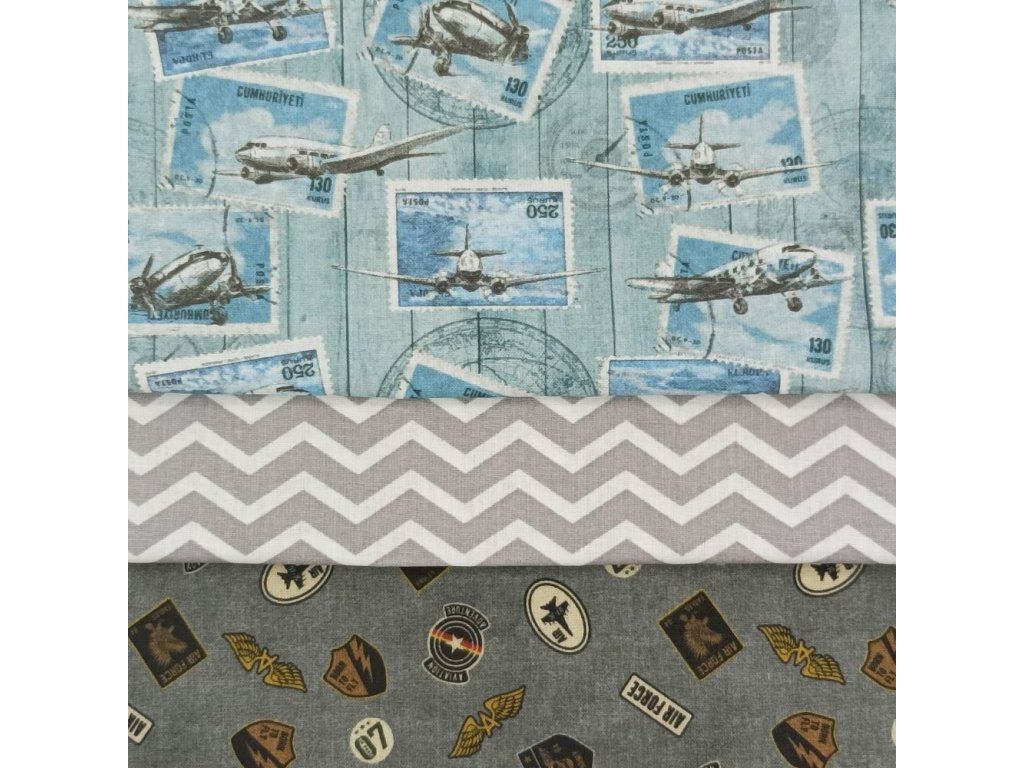 3 kusy látek o rozměrech 45 x 50 cm