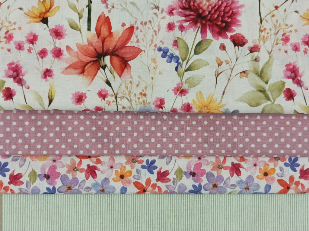 Bavlněná látka Luční kvítí barevné - digitální tisk