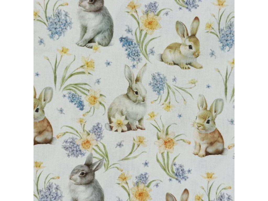 Bavlněná látka Králíci s narciskami - digitální tisk