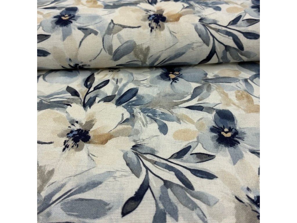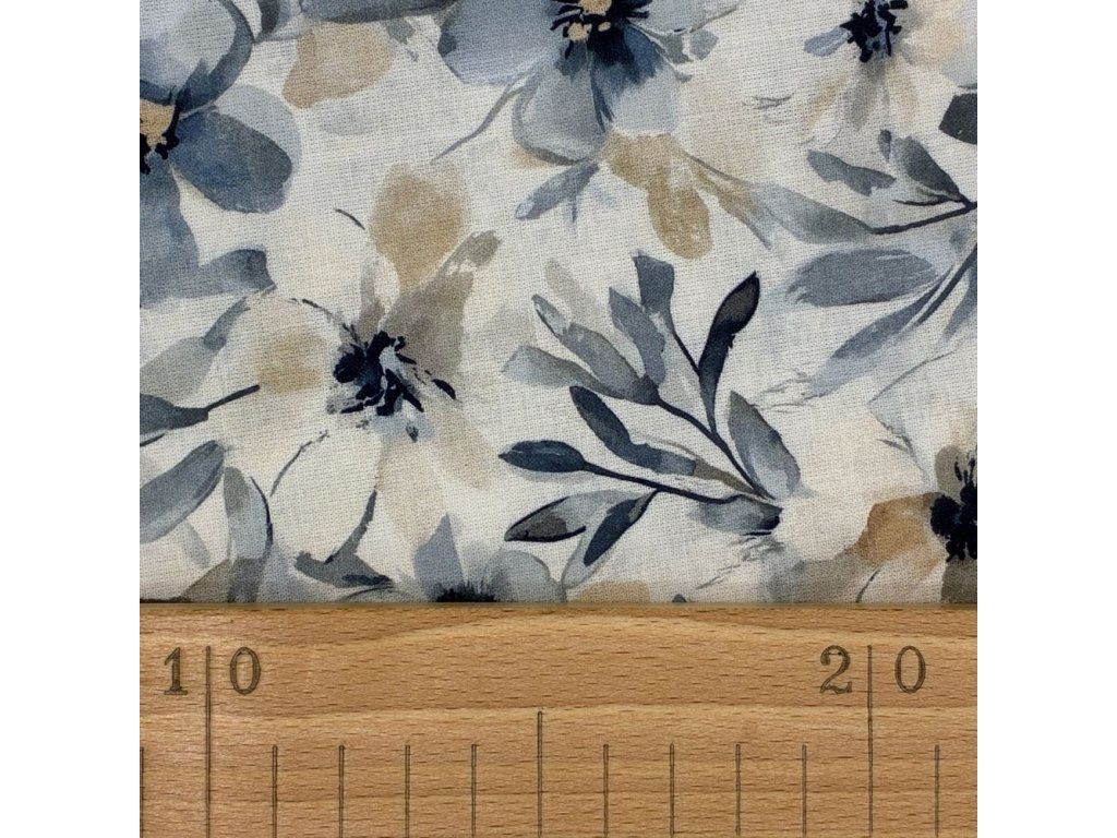 Bavlněná látka Květy béžovo-modré - digitální tisk