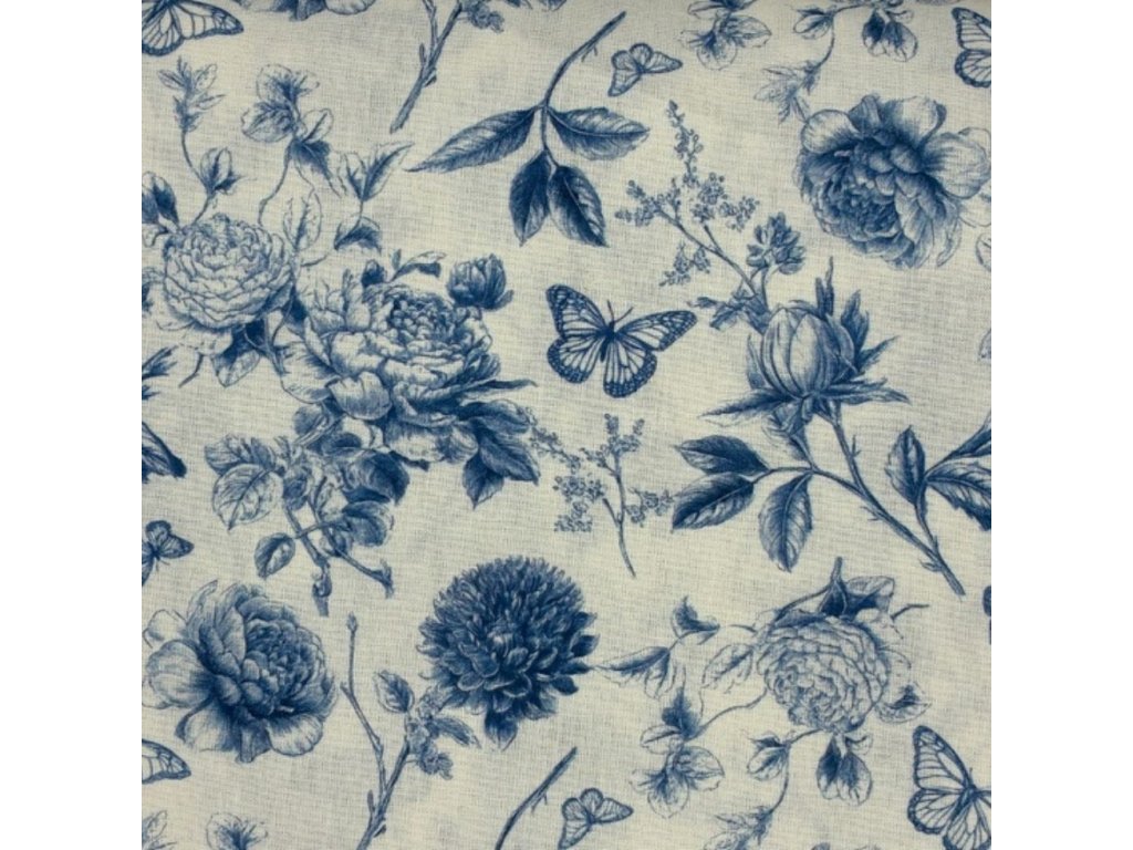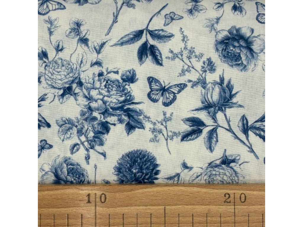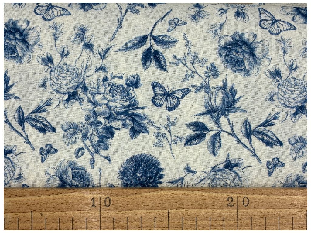 Bavlněná látka Modré růže s motýly - digitální tisk