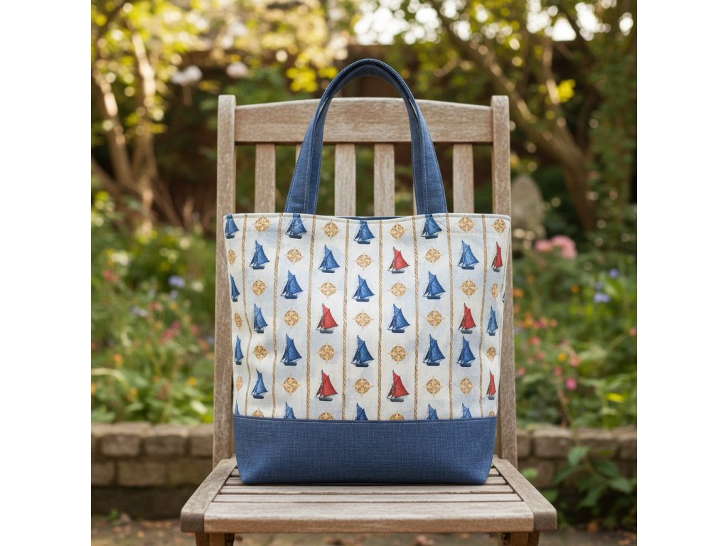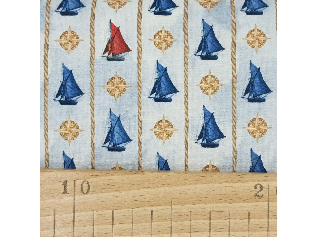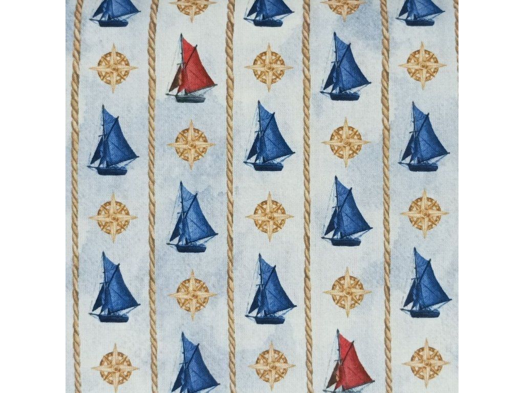 Bavlněná látka Plachetnice v pruzích - digitální tisk