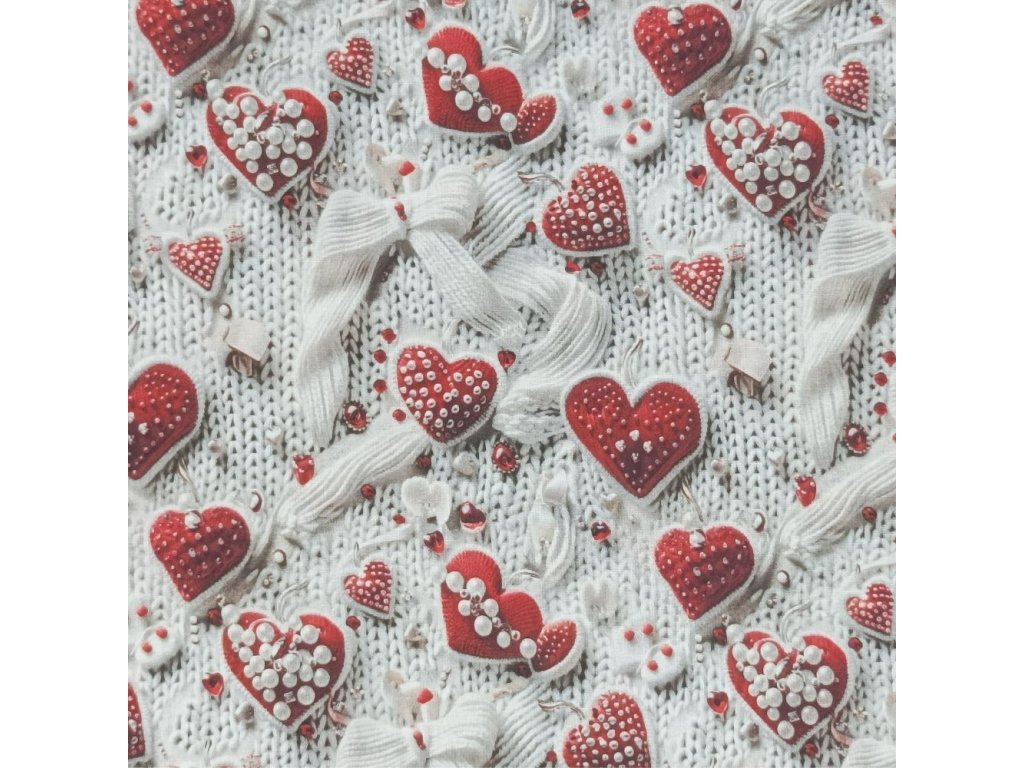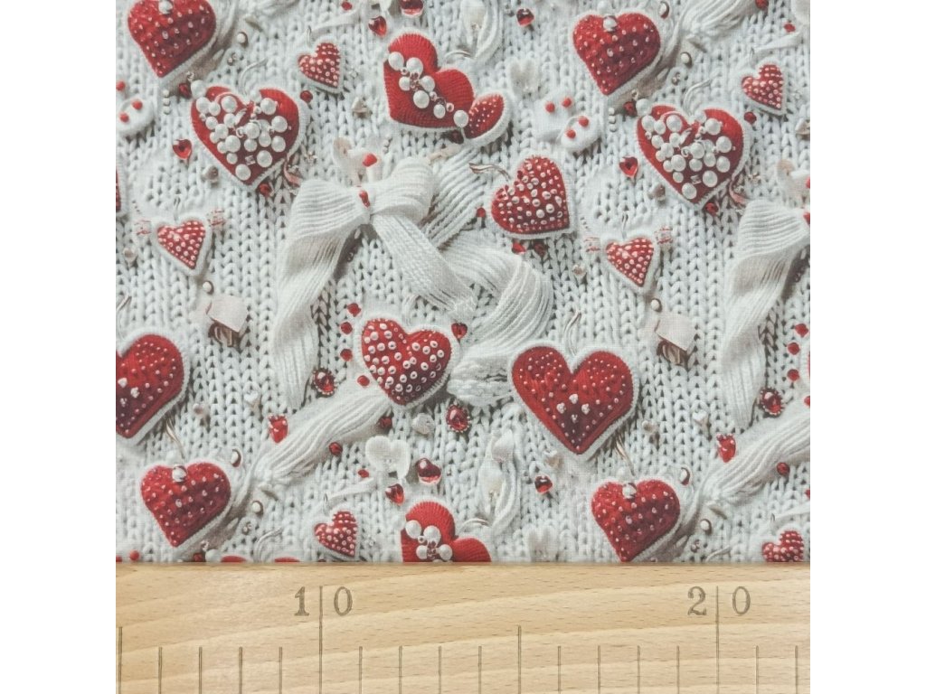 Bavlněná látka Srdíčka červeno-bílá- digitální tisk
