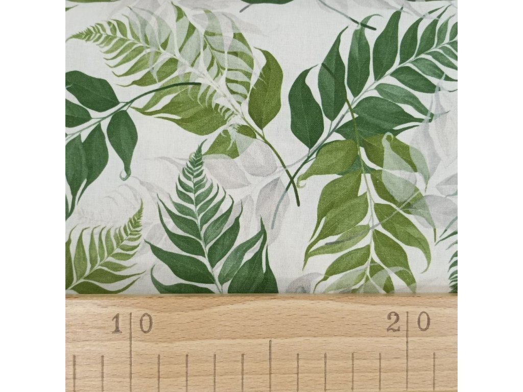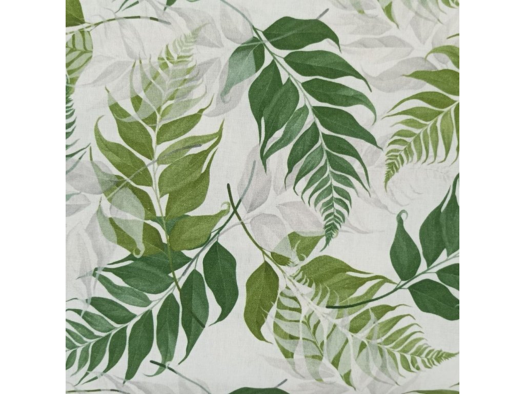 Bavlněná látka Větvičky zelené - digitální tisk