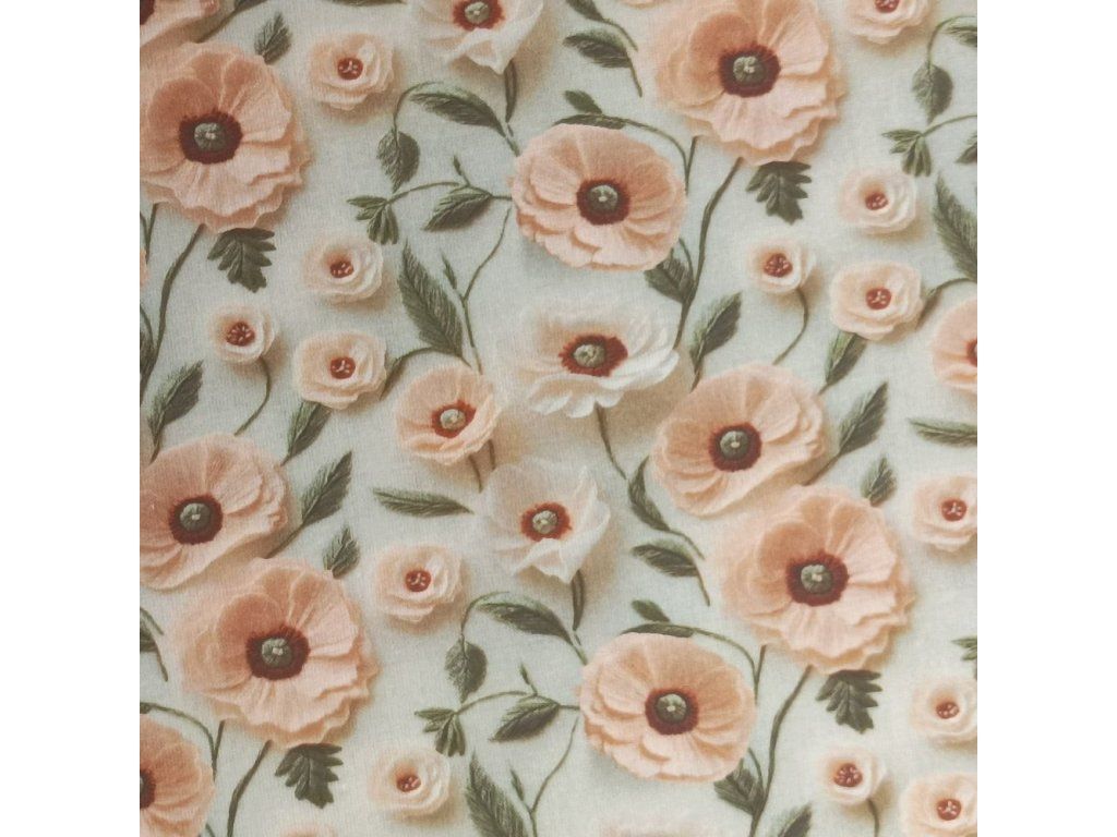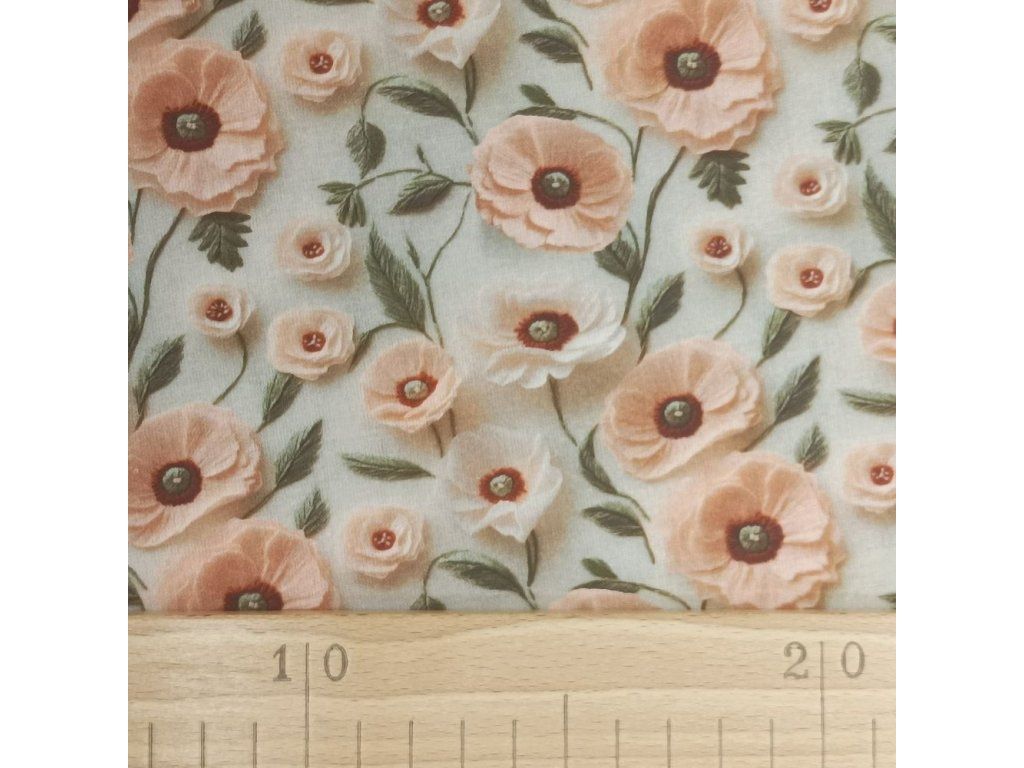 Bavlněná látka Vlčí máky vyšívané - digitální tisk
