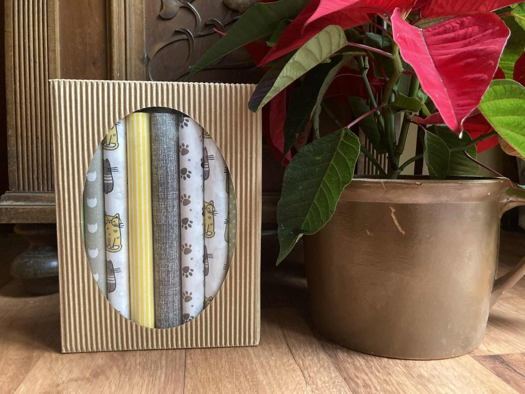 Balíček látek v dárkovém balení.