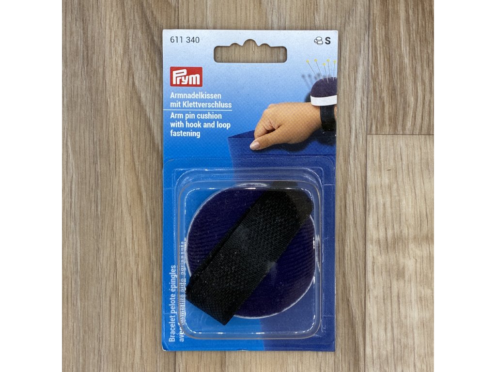 Jehelníček na ruku se suchým zipem, individuálně nastavitelná velikost obvodu. Průměr jehelníčku 6 cm.