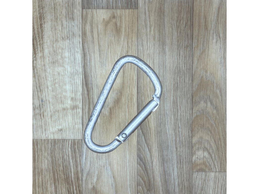 Kovová karabina je vyrobena z hliníku a díky tomu je lehká. Použití: výroba klíčenek, k přichycení popruhů k taškám.