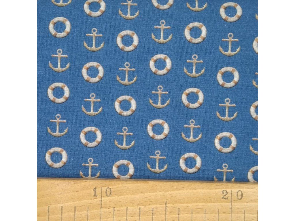 Bavlněná látka Kotvy a záchranné kruhy - digitální tisk