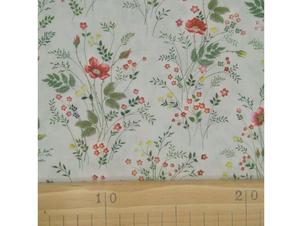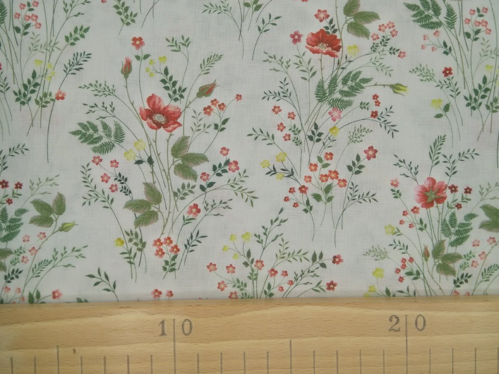 Bavlněná látka Luční kvítí červené - digitální tisk