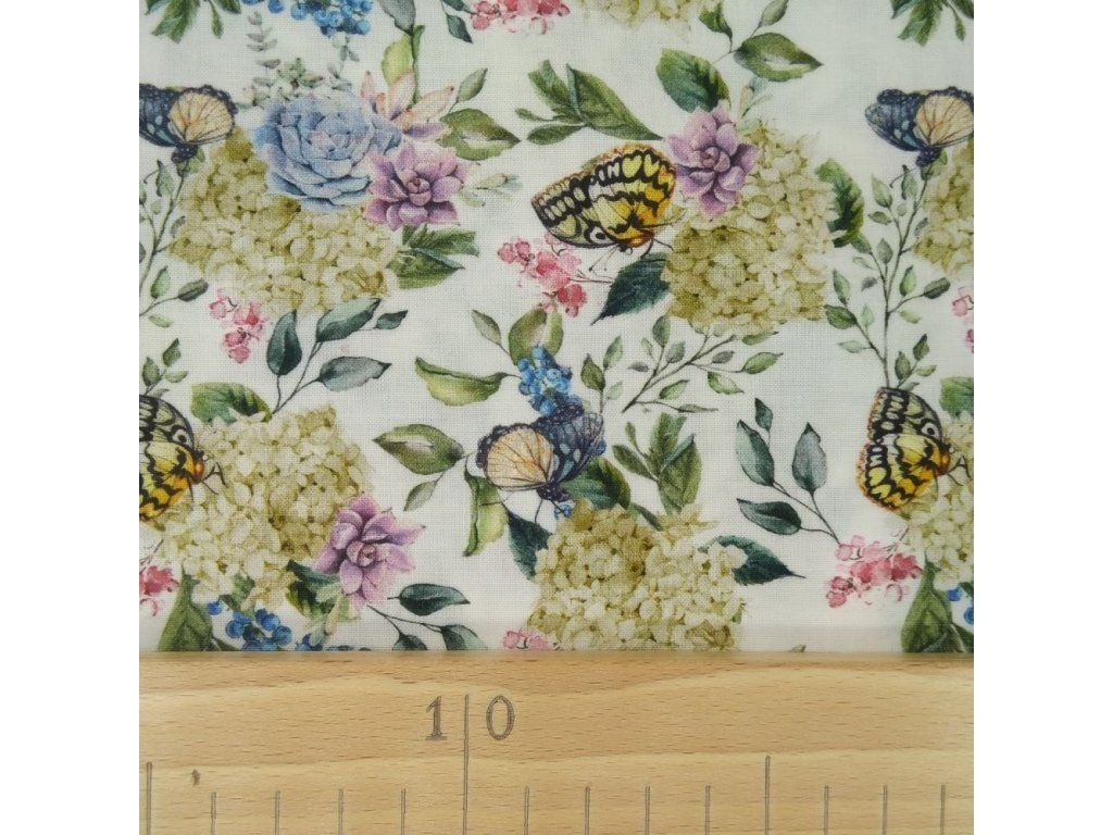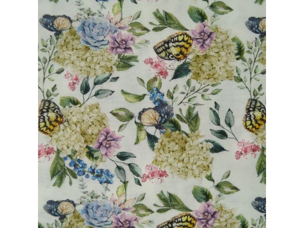 Bavlněná látka Motýli na květech - digitální tisk