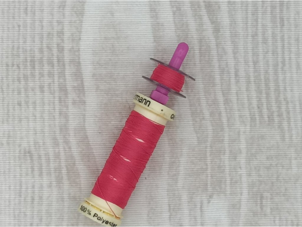 - do delší části nasunete cívku (1 nebo 2 ks) a kratší část nasunete na nit