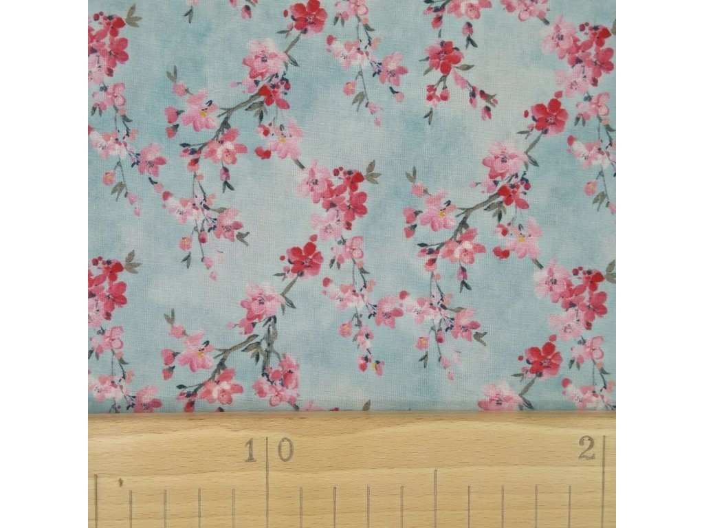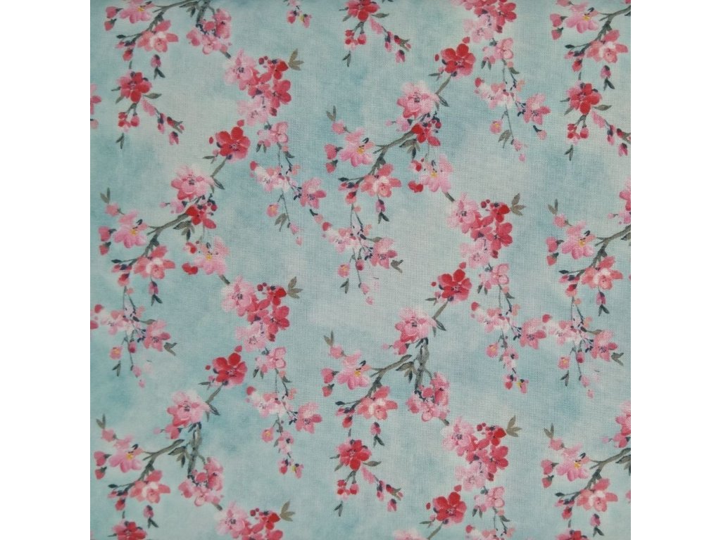 Bavlněná látka Sakury na tyrkysové - digitální tisk
