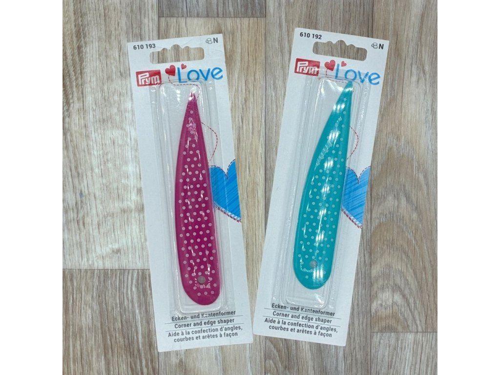 Plastový nástroj pro formování ušitých záhybů a lemů (např. límců, manžet atd.). Vzhledem k zaobleným hranám je vhodný i pro jemné látky. Také pro skládání papíru, plsti nebo lepenky.